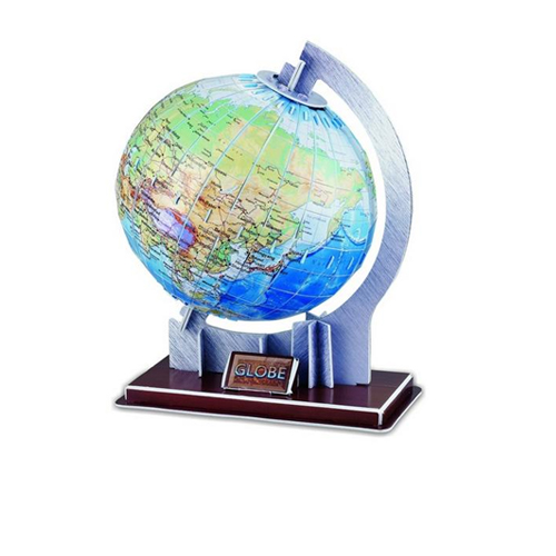 Geographical globe with political boundaries and plastic graduated arc. Marked in English language.