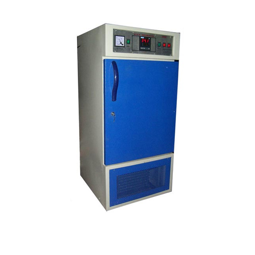 Double wall construction. Inner chamber made richly anodized aluminum or highly polished stainless steel sheet. Supplied with two/three removable perforated shelves. Exterior made out of thick mild steel sheet duly finished in write stoving enamel/powder coated paint with mat finished colour combination. Outer double wall door is provided with magnetic gasket and lock & key arrangement. Inner door unbreakable acrylic transparent sheet for inspection of material in the chamber without disturbing the chamber temperature. Door operated inner illumination has been provided. Temperature is controlled by Delux Digital Controller from 5oC to 50o 0.5o C. Standard cooling unit with a sealed compressor with protective devices has been provided below the chamber for safe and efficient working. Heating arrangement has been made with in the chamber for higher temperature working. Inner air circulating system is provided to achieve uniform temperature. A control panel is provided with various indicat ors, on-off switch. Supplied with cord and plug etc. To work on 220V AC 50 Hz single phase.