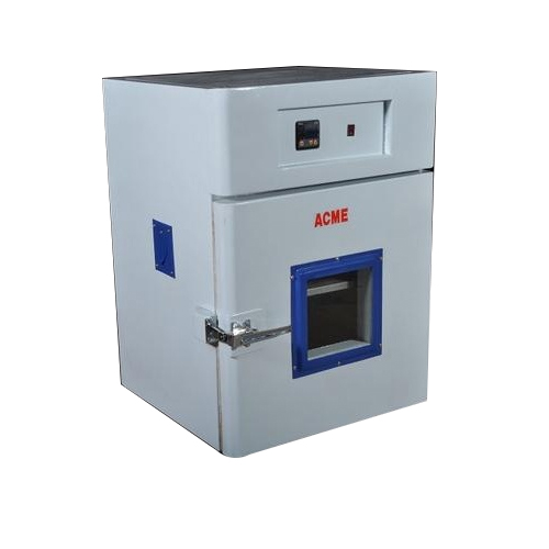 Standard double wall fabrication. Inner chamber made of richly anodized aluminum or highly polished stainless steel sheet. Exterior fabricated out of thick milled steel sheet duly finished in shoved enamel off white paint or pastle mat finish colour combination. wire heating elements provided on three sides attain quick and uniform heating in range of 50°C to 250°C, controlled by capillary type thermostat. L-shaped thermometer is built-in type. Control panel is provided with selector switch of high or low rates of power, thermostat control Knob and indicators for mains & thermostat. Supplied with cord and plug. The equipment is suitable to operate on 220 V AC 50 Hz single phase.