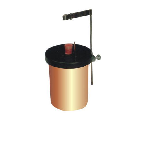 Copper calorimeter 75 x 50 mm , insulated, outer vessel of 100 x 65 mm size with a plastic cover having holes for thermometer and stirrer. Holder for thermometer is fixed to the outer vessel. Complete with stirrer.