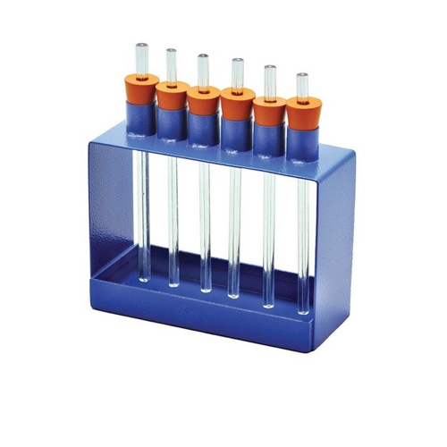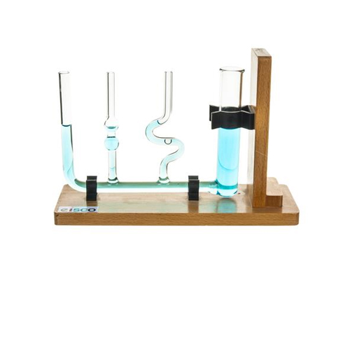 Metallic frame with six glass tubes of different bores, each of 150 mm length, fitted with corks, to show different heights of water column in different bore tubes.