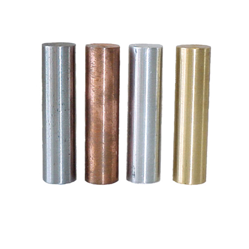 A set of six metal cylinders 40 x 10 mm dia of copper, brass, iron, zinc, lead and aluminium.