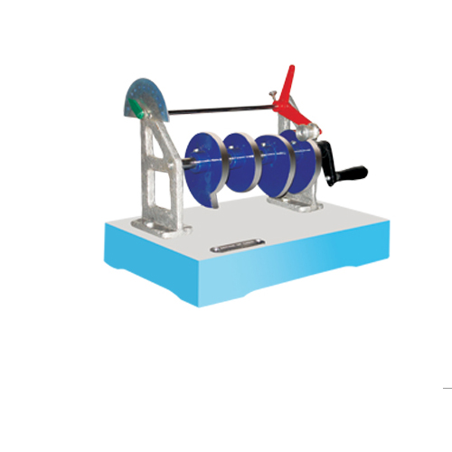 Comprises of copper calorimeter 60 x 6 mm with integral pulley of 20 mm dia. rotates in a boss, mounted on base and the friction brake consists of cork lined jaws on pillar, both mounted on base.