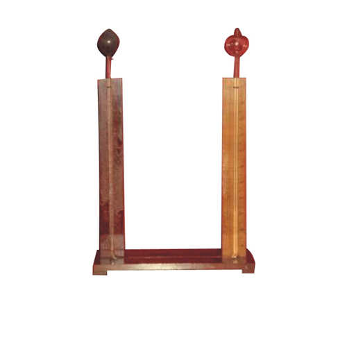 For demonstration, mercury column is feasible and scale graduated in Metric and English system. Zero point adjustment is carried by a screw clamp attached to a glass tube, complete fitted on wooden polished, supplied without mercury.