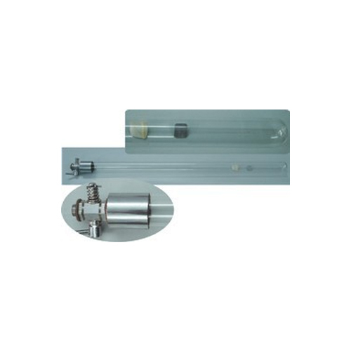 Two glass tubes 220 mm long, one is closed at the top and other one is open and connected by 1 Meter pressure rubber tubing. Both the tubes are mounted on the brackets which can be locked in any portion on the metal supporting rods. Stand carries a graduated scale 0 to 100 cm.Mercury required for this 3 apparatus is approx.30 cm.Supplied without mercury.