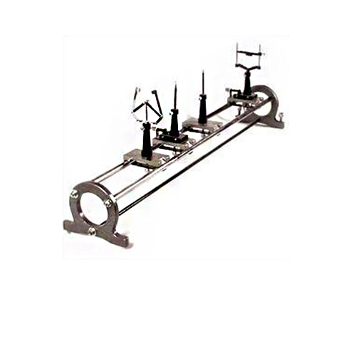 Metallic bar 1000 x 19 x 6 mm with holes at every 50 mm along the centre line. For the suspension of the bar, a steel knife edge is mounted in a wall bracket.