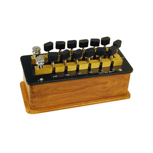 Resistance Box (Plug Type) is of a superior quality Heavy Brass Metal Blocks Size 7/16" are bound to Bakelite Plate by means of nuts and screws securing rigid fixation and eliminating any chance of contact error creping due to loosening of plugs and lugs which are cut to fine taper and are interchangeable. Plug heads are machine moulded, of heavy insulated Bakelite in beautiful shapes. The boxes are made of Teak-wood and nicely polished. We are renowned as one of the staggering High Power Resistance Box Suppliers in India. Great care is taken in preparing the wire wound resistance. Selected double Covered Eureka Wire is wound in Bakelite spools. Sufficient ageing and Heat Treatment is processed through to avoid any moisture effects. Solder Joints are sealed after calibration. The Decade Resistance Box is calibrated on imported Testing Bridge Accuracy ± 0.1%