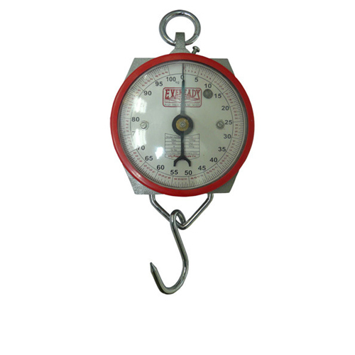 Dial type, circular scale, 6 inches with suspension and load hooks, with zero adjuster.