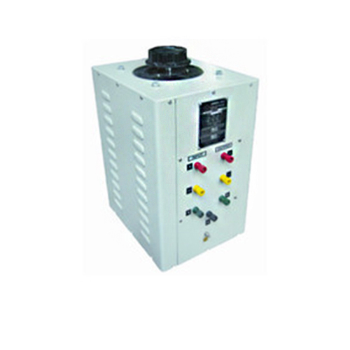 Continuously variable voltage autotransformer, protected type. Comprises a tordially wound transformer with a continuously variable output voltage 0-260 volts A.C. steplessly under full load. Input 220-240 Volts A.C. 50 Hz. In stout metal case mounted on a metal base with two output terminals. Single phase with mains cable.